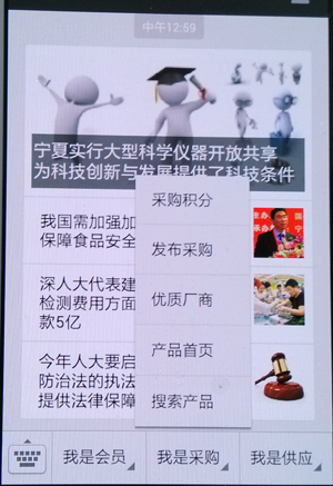 2、我是采購(gòu) 菜單功能有:搜索產(chǎn)品、產(chǎn)品首頁(yè)、優(yōu)質(zhì)供應(yīng)商、發(fā)布求購(gòu)、采購(gòu)積分