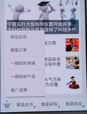 1、我是會(huì)員 菜單功能有:綁定會(huì)員、查看訂單、一鍵刷新商鋪、一鍵刷新產(chǎn)品、推廣成果